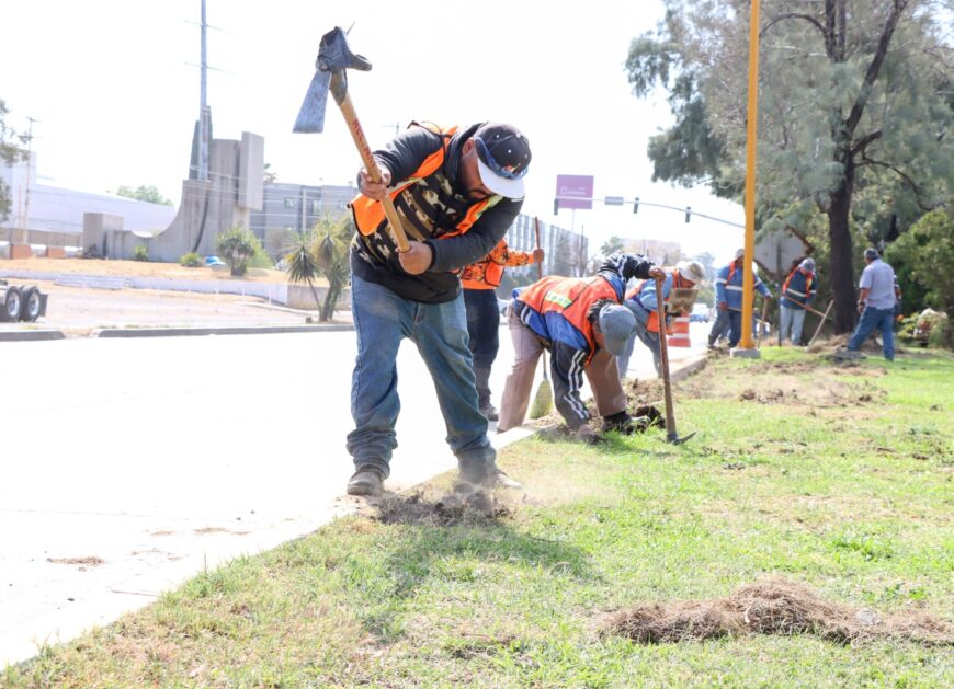 La Dirección de Parques y Jardines del Municipio de Aguascalientes, realiza labores de perfilado en camellones para crear zanjas en las orillas como parte de…